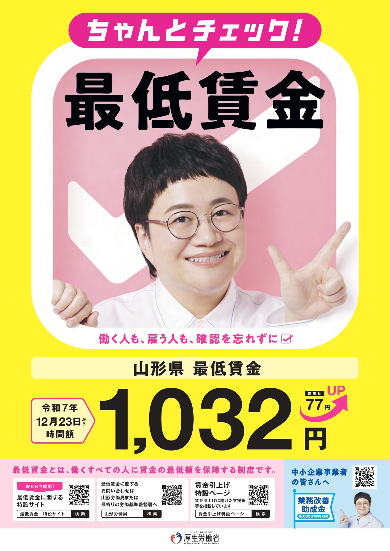また、山形県労働局のホームページ内には最低賃金のリーフレットを掲載しておりますので、閲覧やダウンロード等してご利用ください。