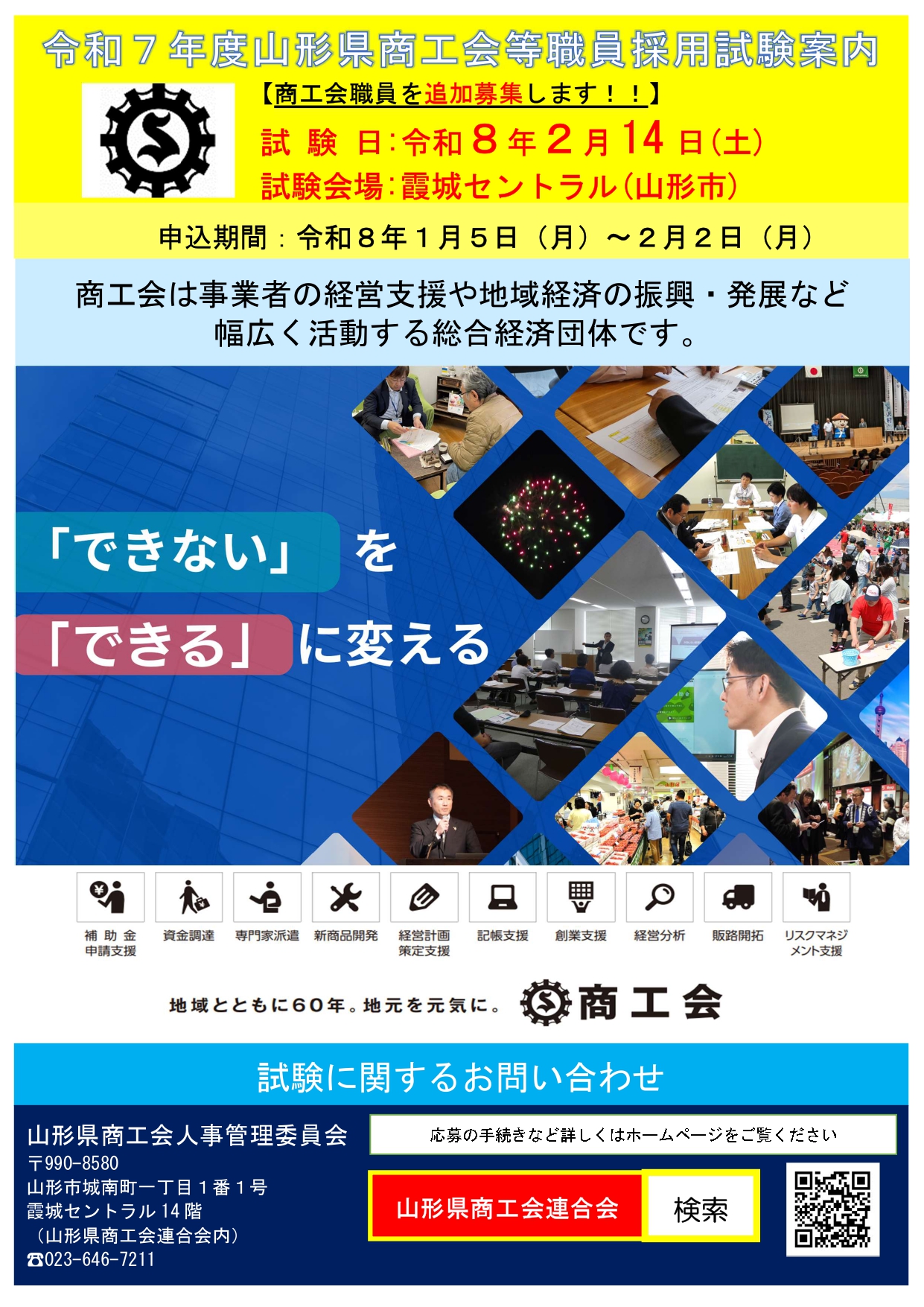 令和7年度山形県商工会等職員採用試験【追加募集】のお知らせ